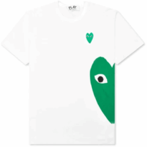 Elevate your casual wardrobe with the Comme Des Garçons Play Red Emblem And Green Heart T-Shirt, a perfect blend of