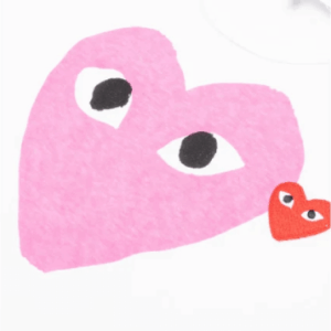 Elevate your casual wardrobe with the Comme Des Garçons Play Red Emblem And Pink Heart T-Shirt, a perfect blend of