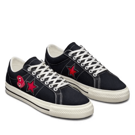 Crafted for those who appreciate subtle statement pieces, the Cdg Converse One Star Low Top Black delivers comfort and attitude in equal measure. The classic rubber outsole ensures traction and durability, while the OrthoLite® insole offers cushioned support for all-day wear. Whether you’re dressing down with jeans or elevating a casual outfit, this shoe seamlessly blends into any wardrobe with a touch of playful sophistication.