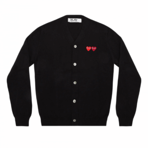 The CDG PLAY Round Neck Cardigan Red Emblem Black is a timeless piece of fashion that blends comfort, versatility, and signature Comme des Garçons PLAY style. Designed with precision and crafted from high-quality wool, this cardigan is perfect for anyone who values both luxury and everyday wearability. The deep black color gives it a refined and classic appeal, while the iconic red heart emblem embroidered on the chest adds a playful yet sophisticated touch.